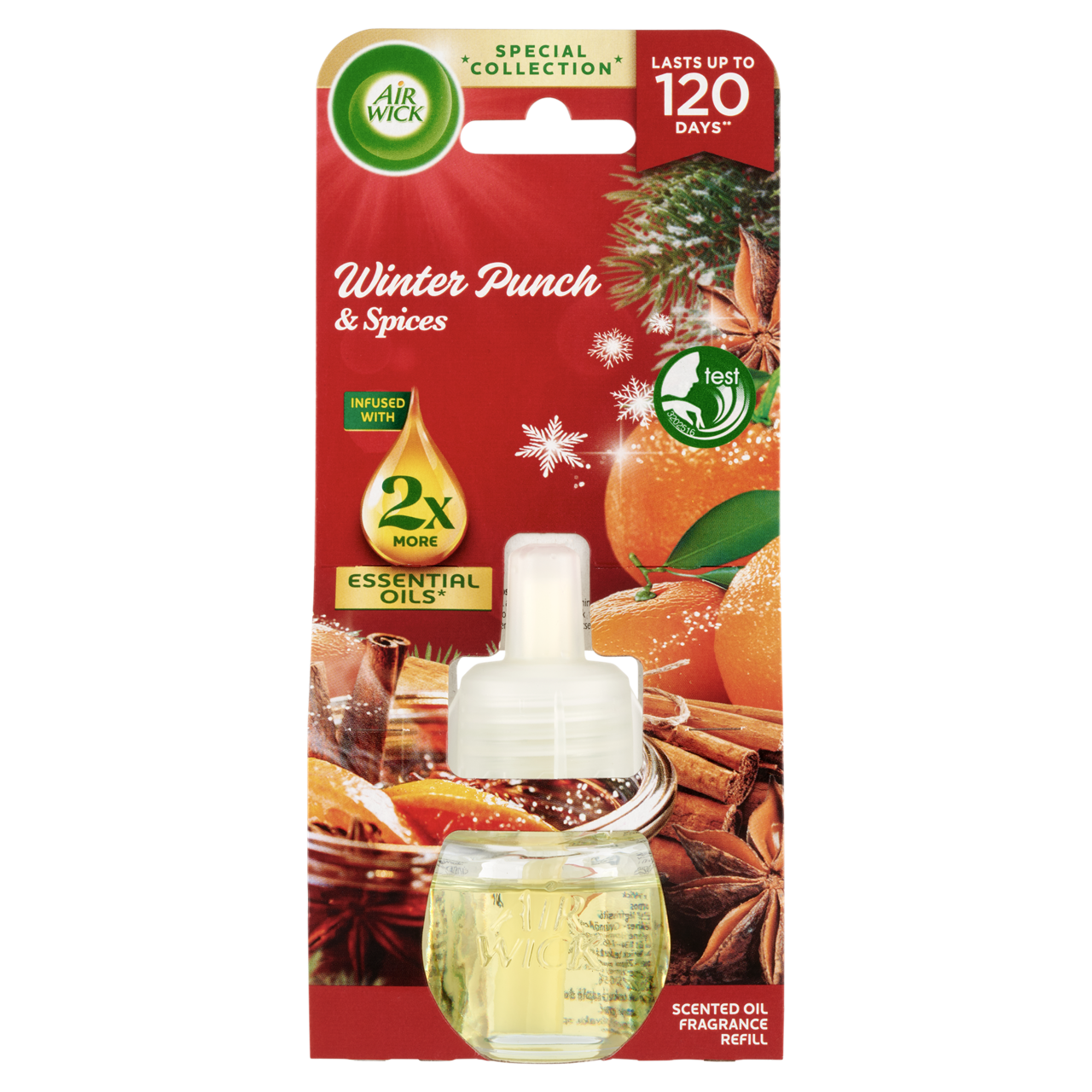 Air Wick Gyümölcsös Téli Puncs elektromos utántöltő légfrissítő készülékhez – a zamatos gyümölcsök, fűszeres fahéj és szegfűszeg illata meghitt, ünnepi hangulatot varázsol otthonodba. A természet ihlette aromák melegséget és kényelmet sugároznak a hideg téli napokon.