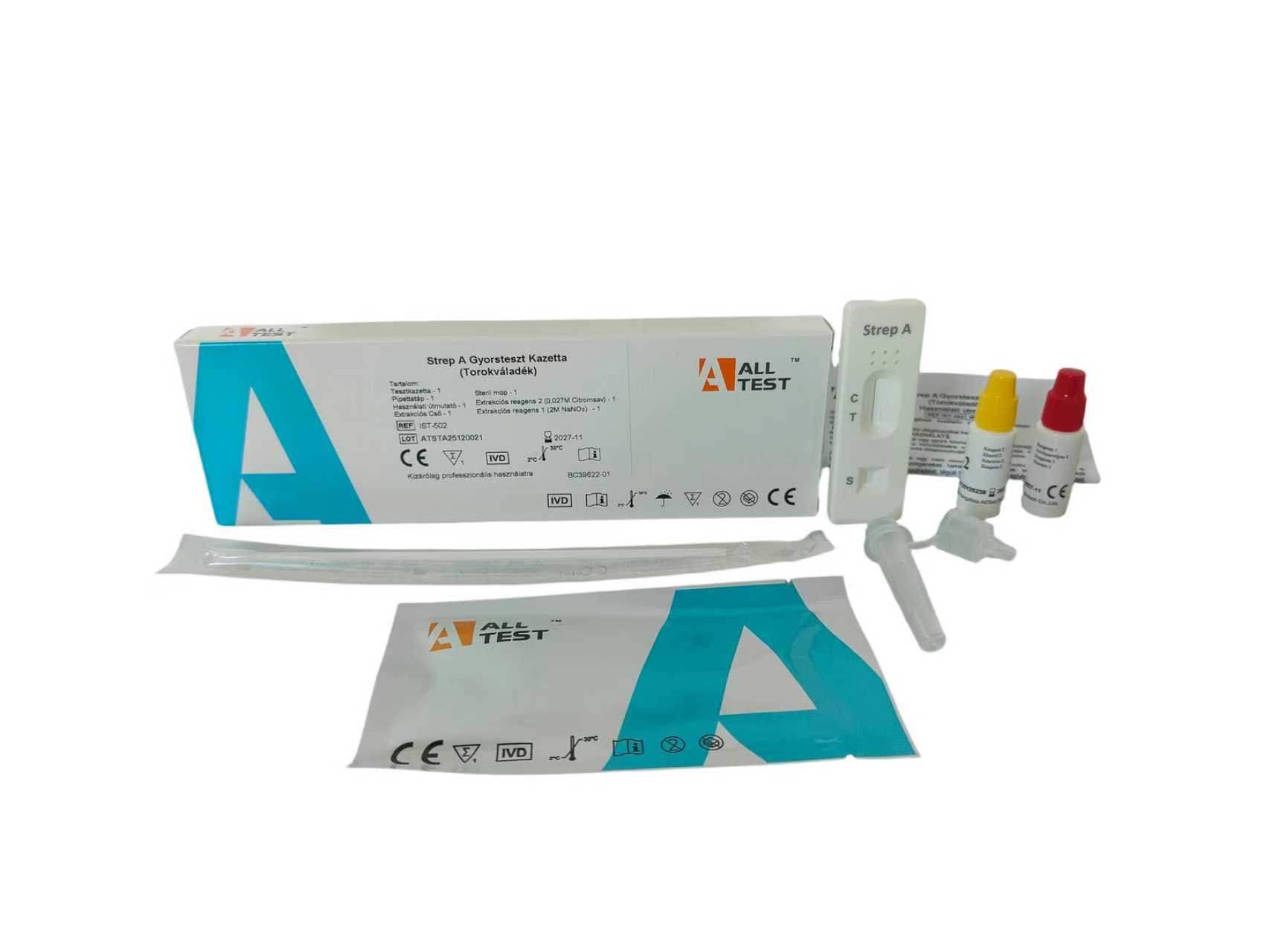 Az Alltest Strep A Torokgyulladás Gyorsteszt egy gyors diagnosztikai teszt, amely a Streptococcus A baktérium jelenlétének kimutatására szolgál torokváladék mintából. A Streptococcus A az egyik leggyakoribb oka a bakteriális torokgyulladásnak (streptococcusos torokgyulladás), amely gyors kezelést igényelhet.