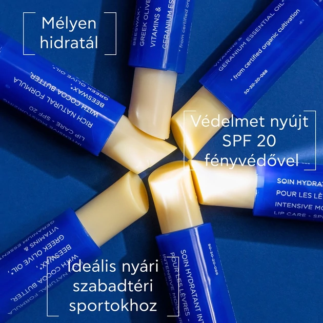 Intenzíven hidratáló ajakápoló stift SPF20 fényvédelemmel, mely ideális napsütéses időben, nyári, téli szabadtéri sportoláshoz, időtöltéshez.