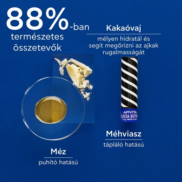 - A kakaóvaj mélyen hidratál és segít megőrizni az ajak rugalmasságát. Gyorsan felszívódik és nem hagy zsíros érzést az ajkakon.