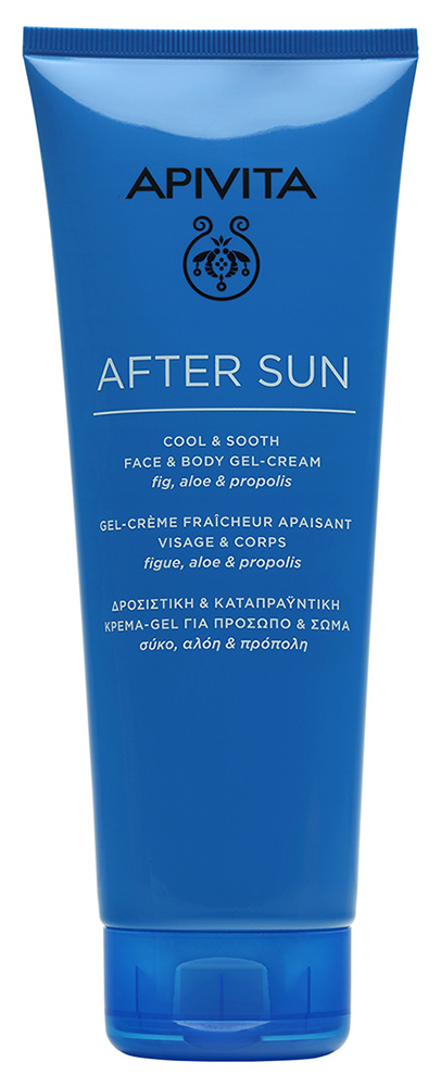 Az Apivita napozás utáni gél-krém visszahidratálja, megnyugtatja a napsugárzással igénybe vett, kiszárított bőrt, és kellemesen hűsítő érzést és azonnali komfortot biztosít. Ideális minden napozás után, akár testápolóként is. Kellemes nyári illattal.