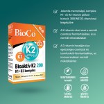 Magas, tablettánként 200 µg mennyiségben tartalmaz természetes eredetű, Bacillus subtilis natto biofermentációjával előállított bioaktív K2-vitamint, 99% all-transz MK-7 formában.
