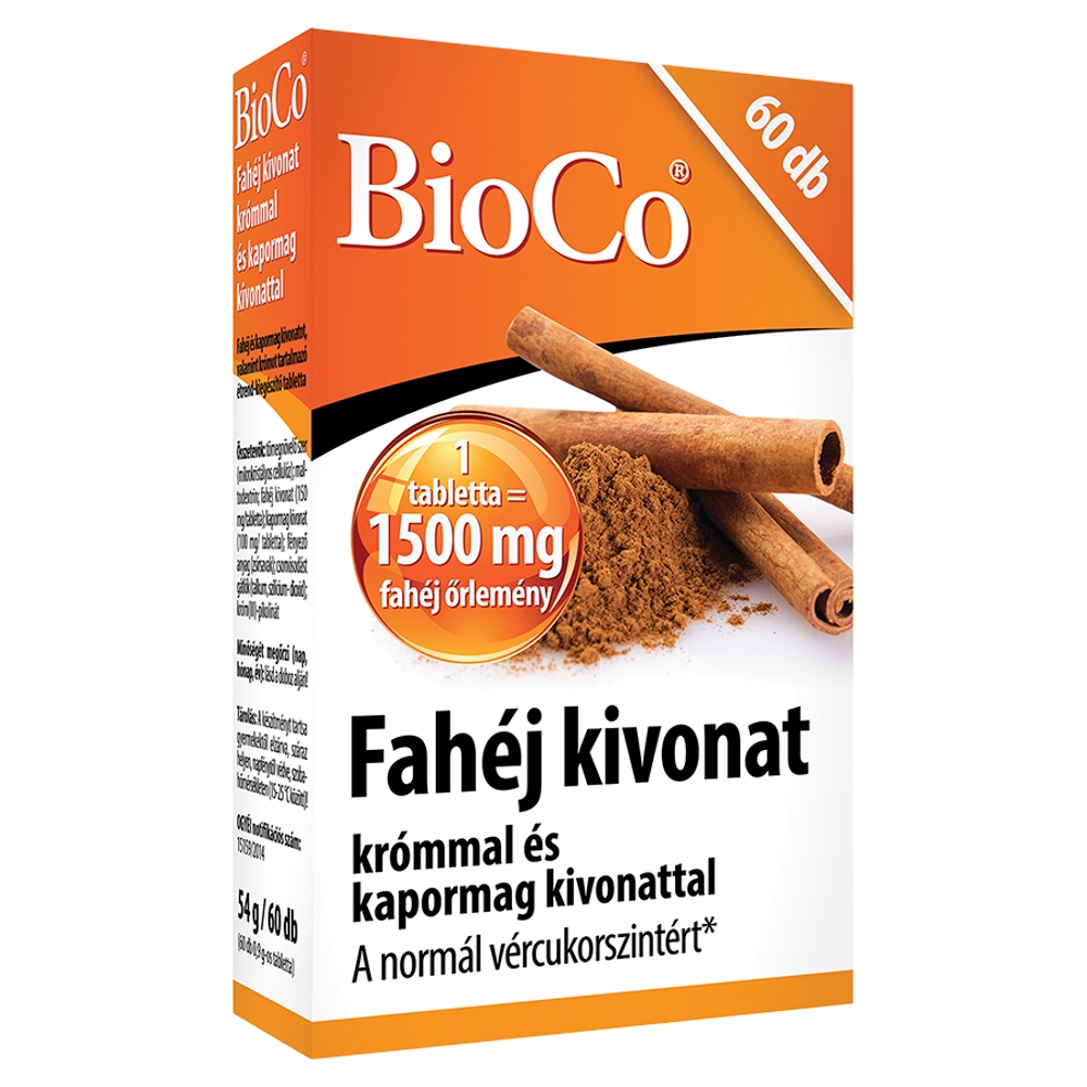 A termék 1 tablettájának kivonattartalma megfelel 1500 mg fahéj, illetve 1000 mg kapormag szárított növényi őrleménynek.