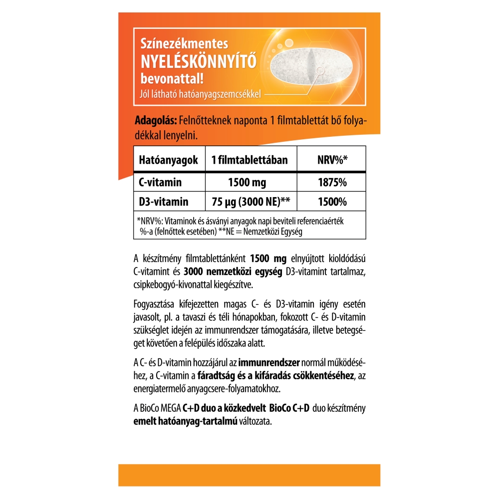 BioCo mega C+D duo C-vitamin 1500mg+D3-vitamin 3000NE filmtabletta 100x