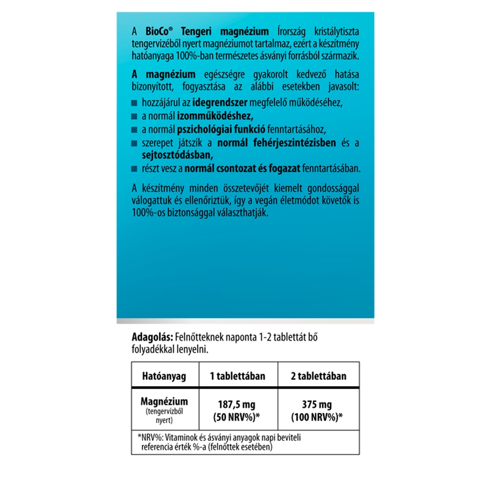 Tengervízből nyert magnéziumot tartalmazó étrend-kiegészítő tabletta