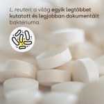 A BioGaia Gastrus Total rágótabletta kétféle, az emberi bélflóra fontos részét képező Limosilactobacillus reuteri törzset tartalmaz: L. reuteri ATCC PTA 6475-öt, valamint L. reuteri Protectis® DSM 17938-at, melyek a BioGaia által szabadalmaztatott baktériumtörzsek, és természetes életterük az emberi szervezet. Bővebb információért kérdezd orvosodat, gyógyszerészedet! Több antibiotikum szedése – például Helicobacter pylori-fertőzés kezelése – esetén fordíts különös figyelmet arra, hogy az antibiotikum előtt vagy után 2 órával vedd be a BioGaia Gastrus® Total tablettát.