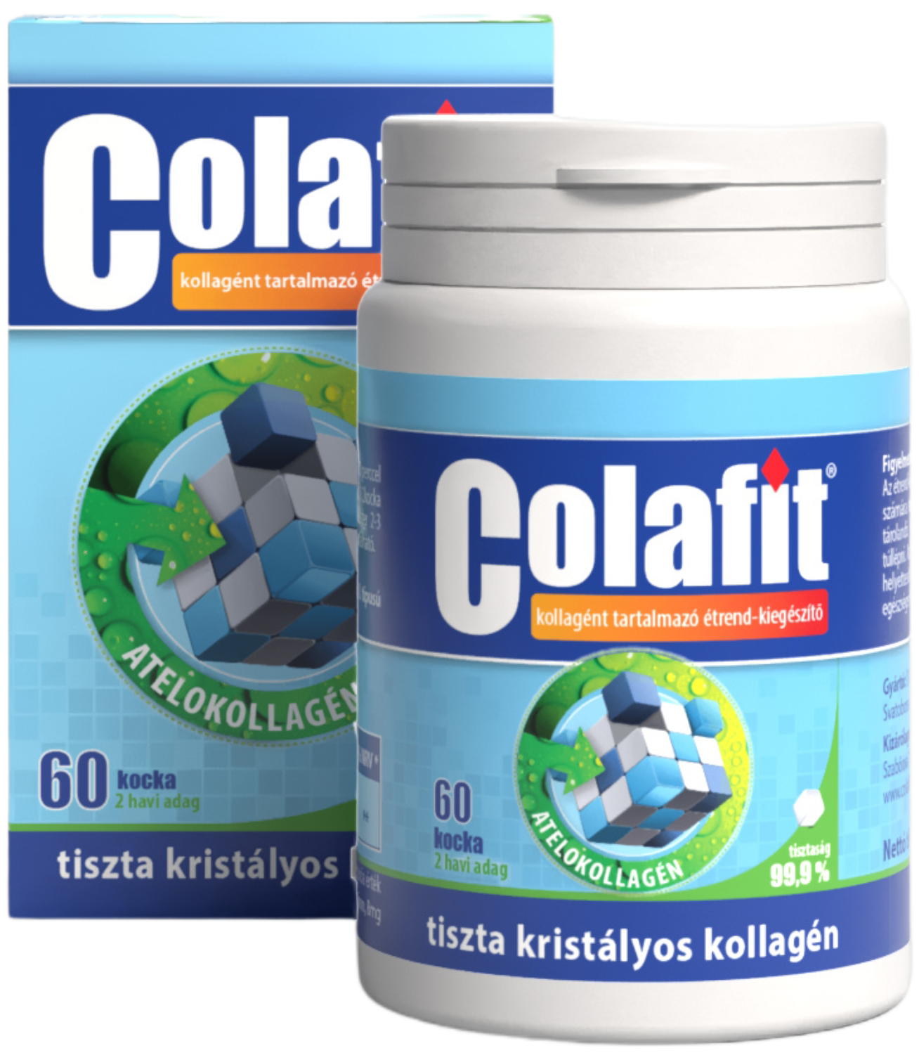 A Colafit kollagén kocka 99,9 % tisztaságú, liofilizált, I. típusú kristályos kollagén. 8 mg liofilizált kollagén 800 mg kollagén gélnek felel meg. Folyadék nélkül is bevehető.