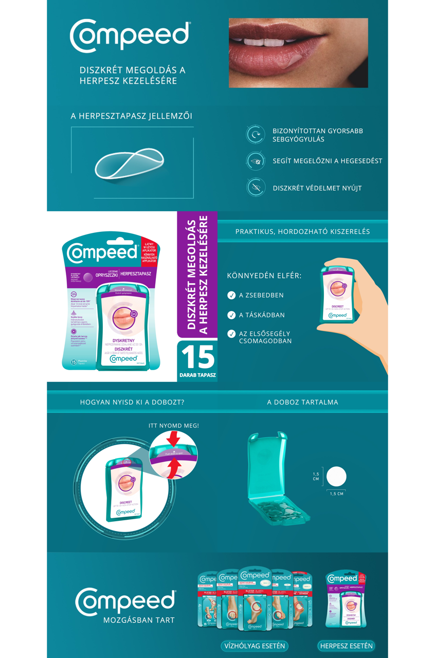 A Compeed® herpesztapasz diszkrét megoldás a herpesz kezelésére. Diszkrét gyógytapasz.