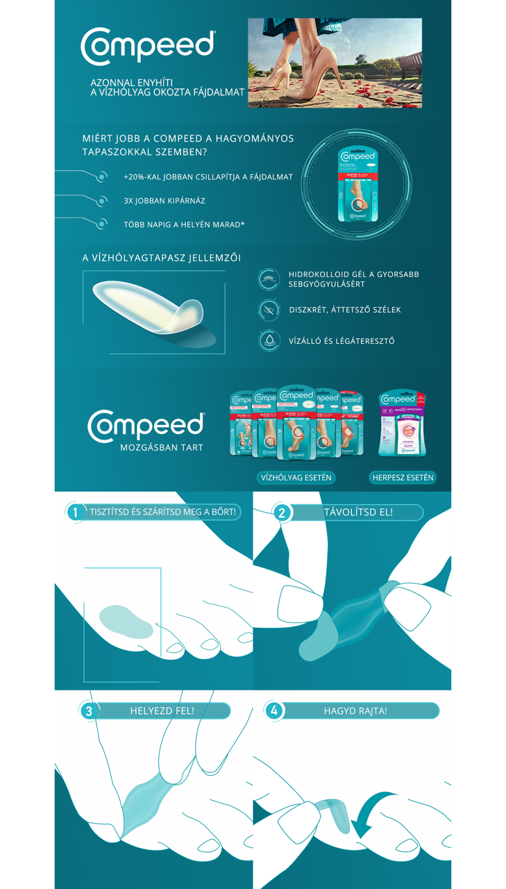 Gyors gyógyulás, azonnali fájdalomcsillapítás. Véd a kidörzsölődéstől, nem mozdul el Compeed® – Legyen megállíthatatlan!