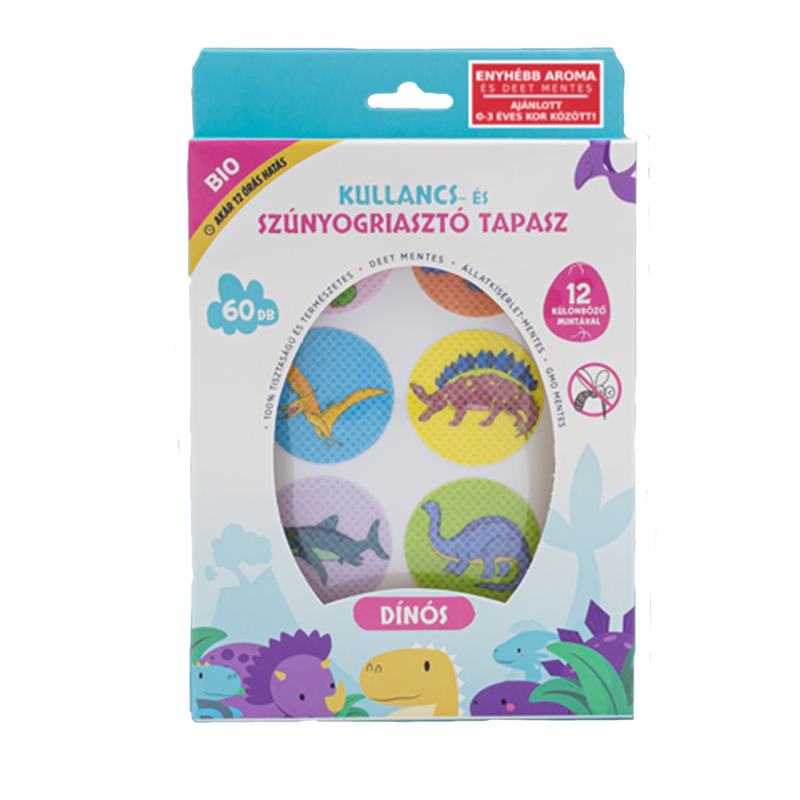 Az Elysium Kullancs és Szúnyogriasztó Tapasz Dinós hatékony védelmet biztosít kullancsok, szúnyogok, tetvek, legyek és hangyák ellen, akár 12 órán keresztül. Nem tartalmaz káros vegyi anyagokat, 100%-ban természetes illóolajok fokozatos párologtatásával tartja távol a nemkívánatos rovarokat.