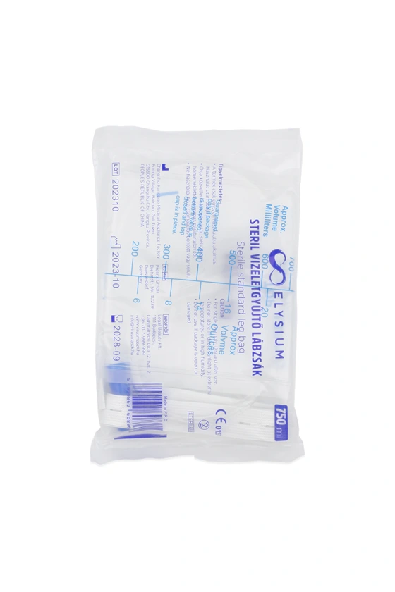 Az Elysium Steril Vizeletgyűjtő Lábzsák segítségével 750 ml vizelet gyűjthető katéteren keresztül. Az orvosi minőségű PVC-ből készült, egyszer használatos katéterzsák visszafolyásgátló és leeresztő szelepet is tartalmaz. Az áttetsző vizeletgyűjtő 100 ml-es beosztással rendelkezik.