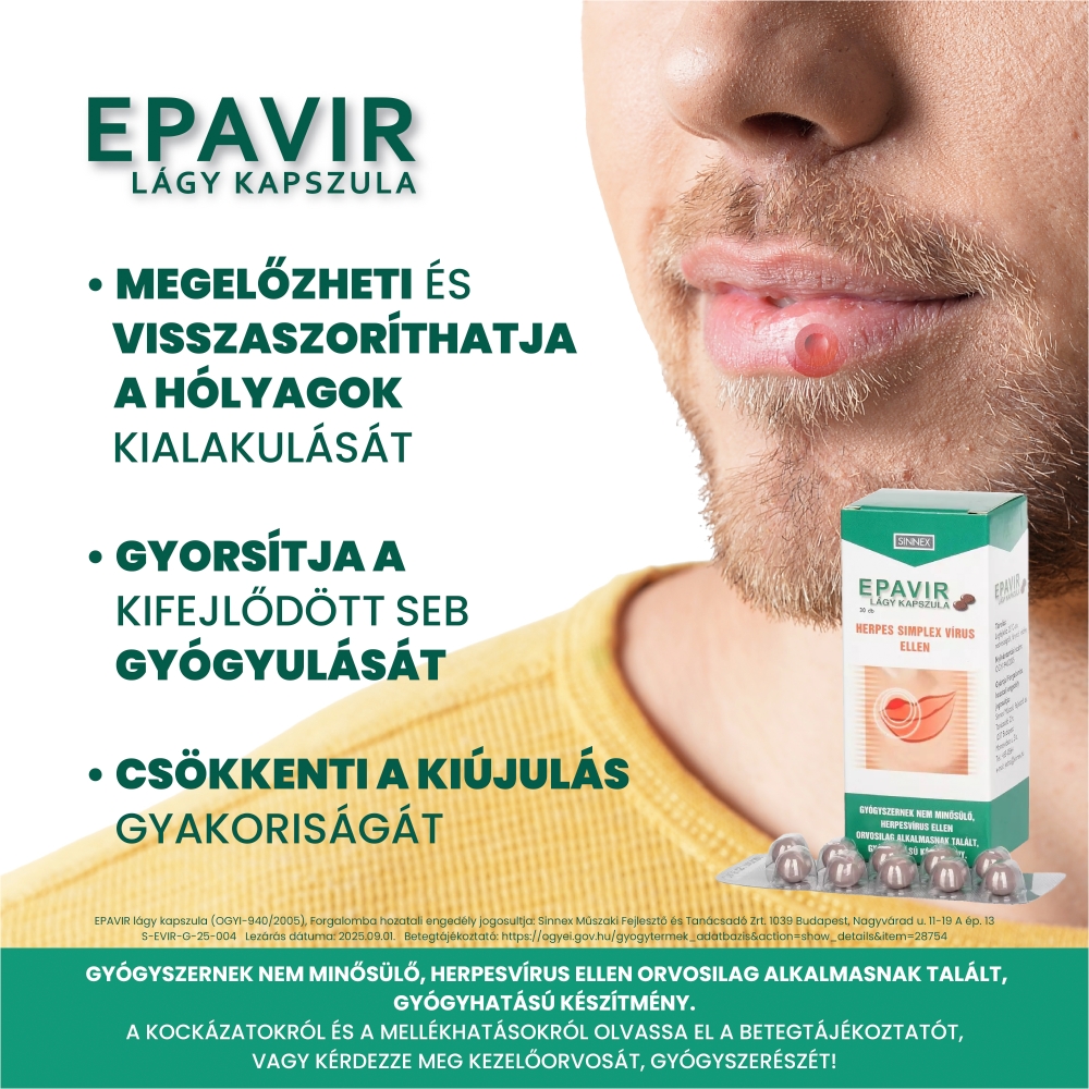 A lehető legkorábbi időpontban megkezdett EPAVIR kapszula szedésével az esetek nagy részében a hólyagok ki sem alakulnak, illetve a kellemetlen sebesedés is megelőzhető.