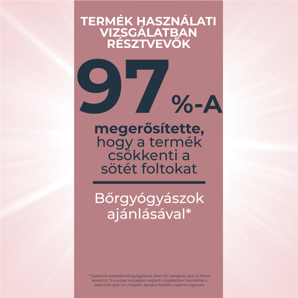 A melanin természetes pigment, mely bőrünk színét adja. A napfény, a hormonális hatások és az öregedés hatására a melanin termelése fokozódhat, és hiperpigmentáció alakulhat ki. A hiperpigmentáció azt jelenti, hogy egyes bőrterületek sötétebbre színeződnek és májfoltok (más néven napfoltok) jelennek meg, melyektől a bőr egyenetlen tónusúnak látszik.