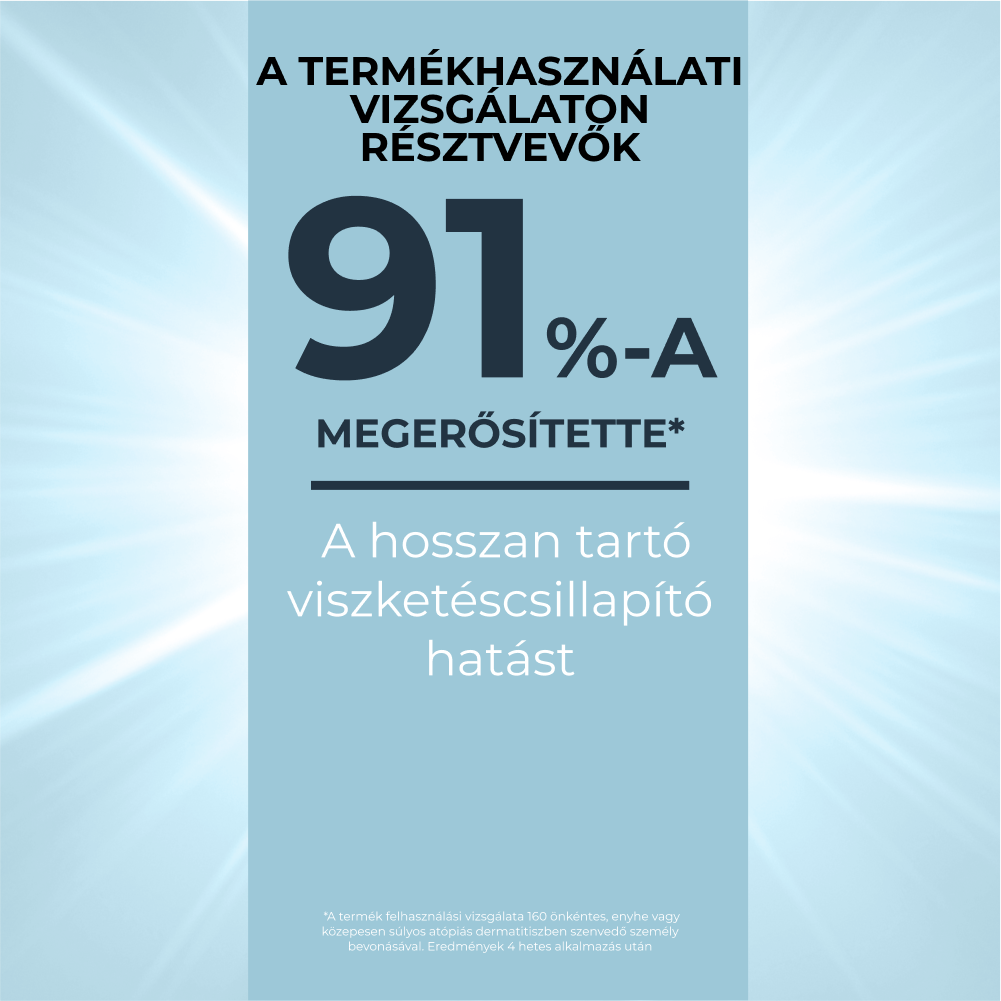 A termék az omega-6 zsírsavak, ceramidok, sheavaj magas koncentrációjának, valamint a bőrnyugtató hatással rendelkező Licochalcone A (édesgyökér kivonat) hatóanyagnak köszönhetően megnyugtatja és ápolja a bőrt. A száraz, viszkető érzet csökkenhet, a bőr állapota javulhat. Mindezek együtt erősítik a bőr védelmi funkcióját és nyugtatják a viszkető, irritált bőrt.