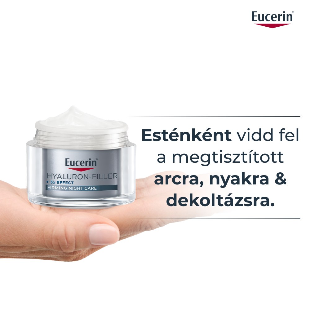 Anti-aging Eucerin Hyaluron-Filler 3x effect éjszakai arckrém: feltölti, stimulálja és védi a bőrödet. Minden bőrtípusra.