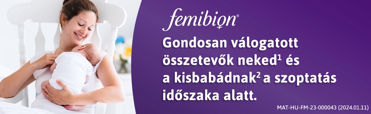 A Femibion a babatervezéstől a várandósságon át a szoptatási idő végéig speciális, gondosan válogatott tápanyagokat tartalmaz. Femibion 3 kifejezetten arra lett kifejlesztve, hogy támogasson téged1 és a kisbabádat2 a szülés után.