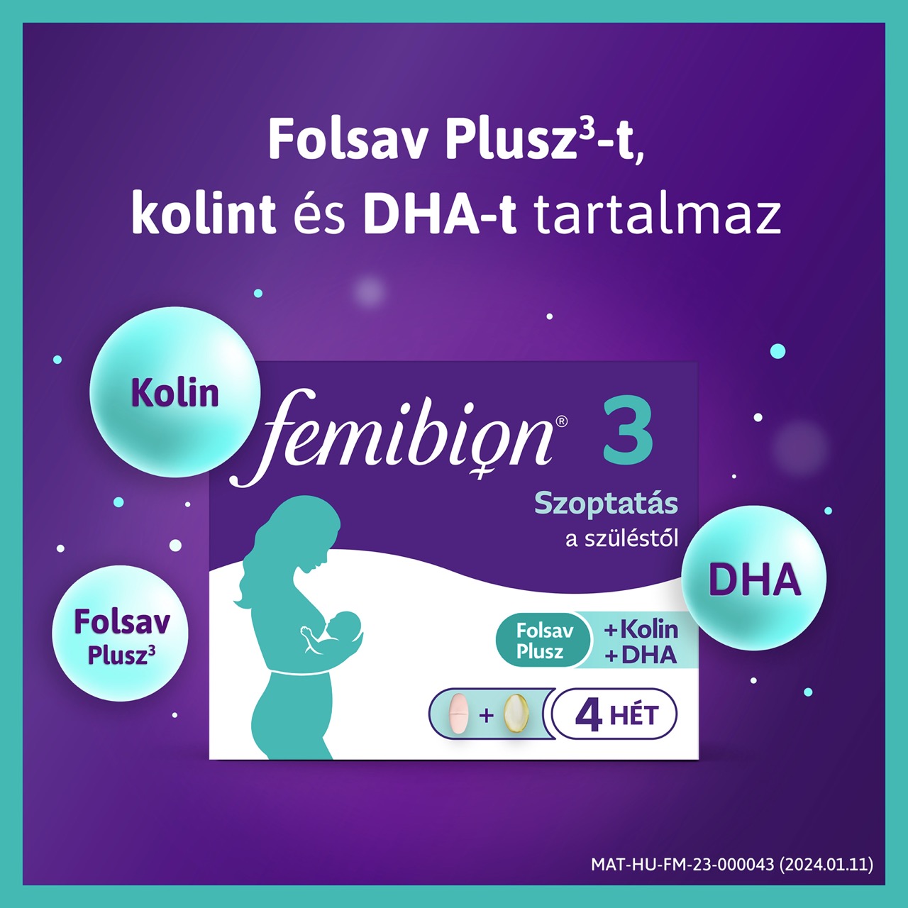 A szülés után és a szoptatás alatt, a kisbabád számára egy rendkívüli növekedési szakasz veszi kezdetét. Az agy és a szemek normál fejlődésének támogatásáért, a Femibion 3 a Folsav Plusz3 (folsav és L-metilfolát) és a kolin mellett omega-3 DHA zsírsavat is tartalmaz.