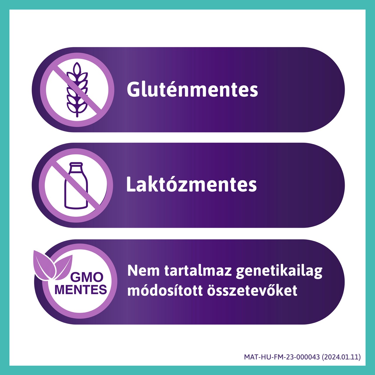 gluténmentes, laktózmentes, nem tartalmaz génmódosított összetevőket