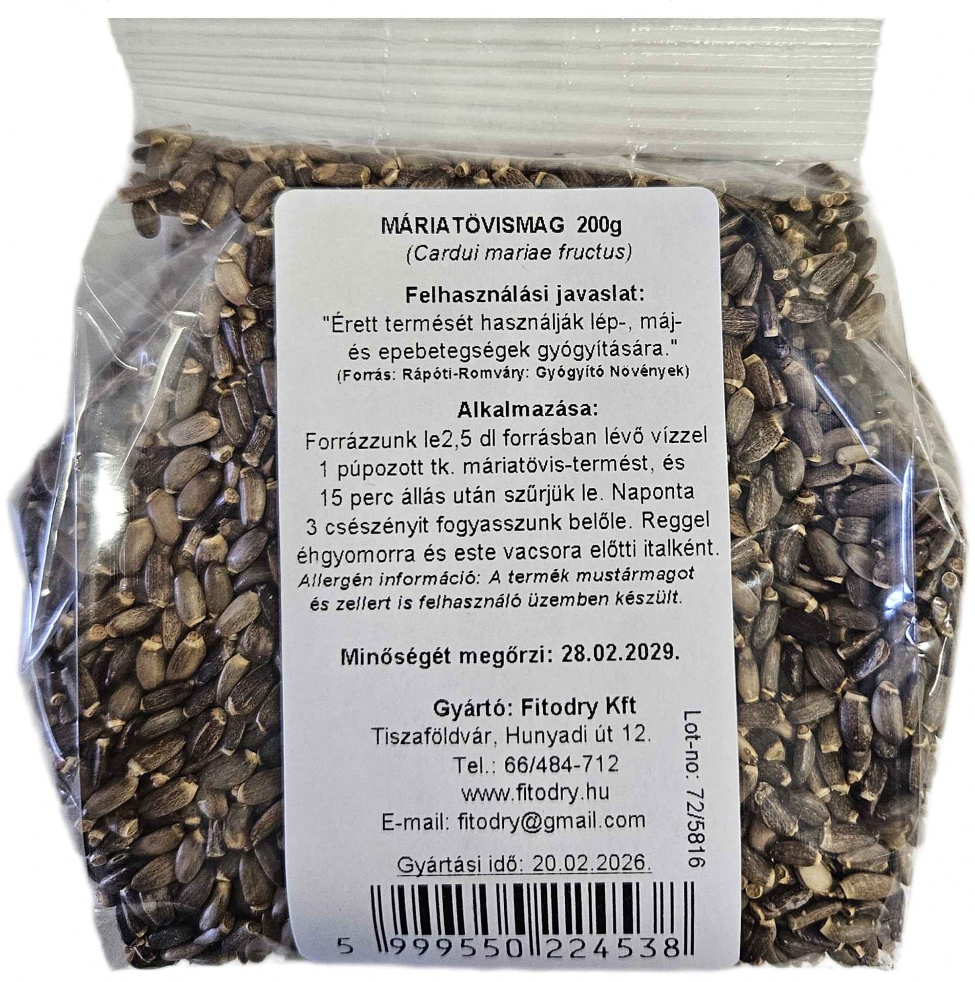 A termék szárított, tisztított máriatövismagot tartalmaz, amely tea, őrlemény vagy ételekhez adva is fogyasztható.