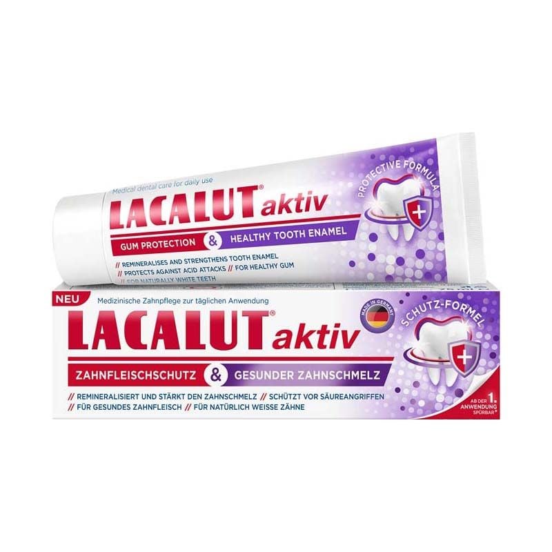 Lacalut Aktiv fogkrém remineralizálja és erősíti a fogzománcot, véd a savak támadása ellen. Az egészséges fogínyért és a természetesen fehér fogakért. Már az első használat után érezhető az összehúzó hatás a fogínyen.