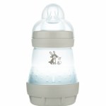 A MAM Anti-colic cumisüveg lecsavarható alja miatt könnyen tisztítható és egyedülálló önsterilizáló funkcióval is rendelkezik.