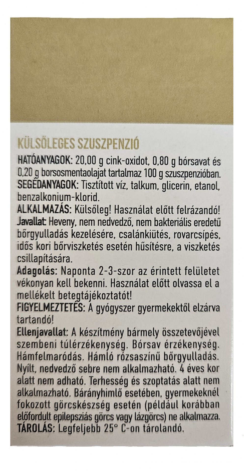 szuszpenziót kell az érintett bőrfelületre felvinni. Folyamatosan 4-5 napig használható.