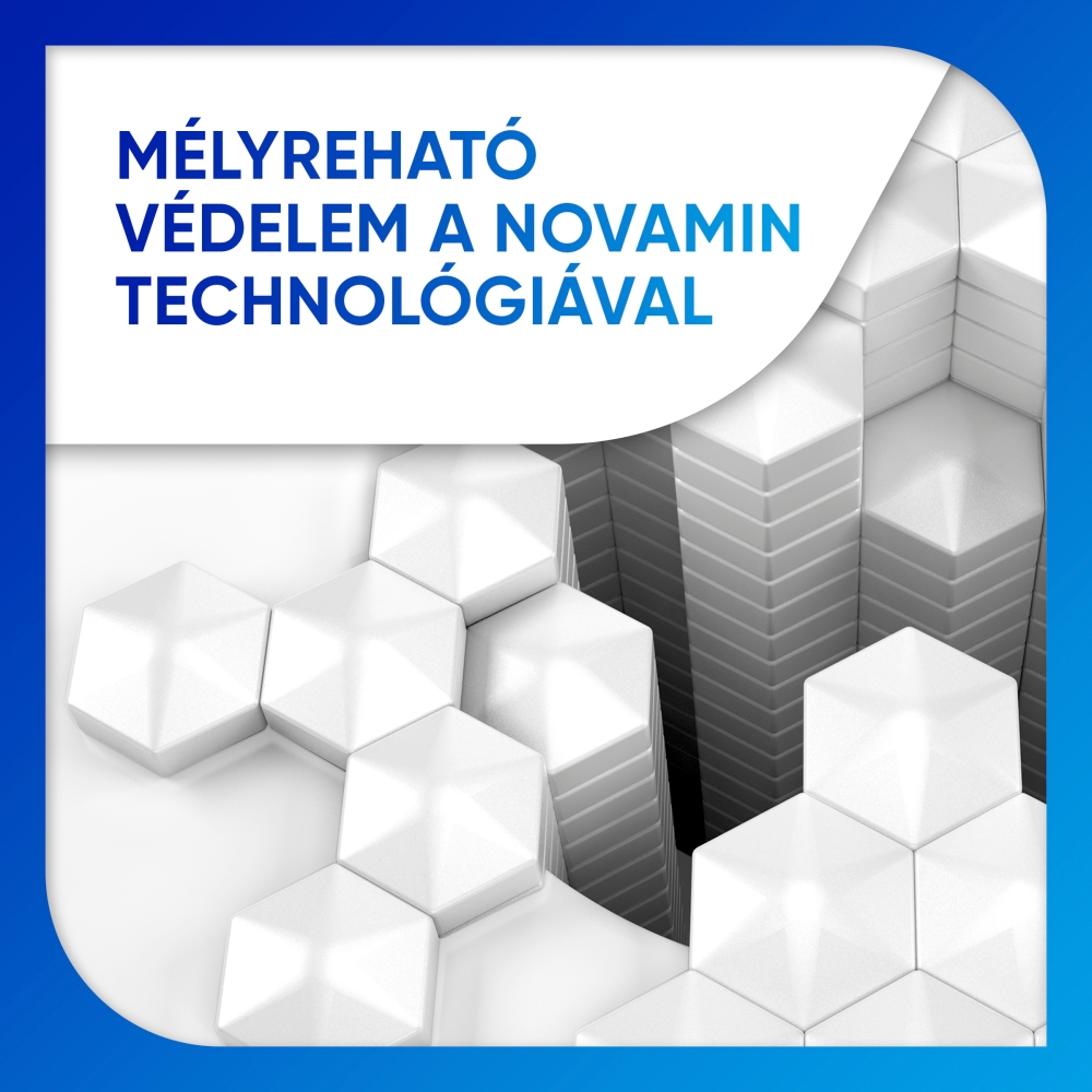 Védőréteg: Az egyedülálló NovaMin technológia olyan védőréteget képez a fogak körül, amely 96%-ban megegyezik a fogzománc összetételével, így mélyreható védelmet nyújt az érzékeny fog dentincsatornáiban.