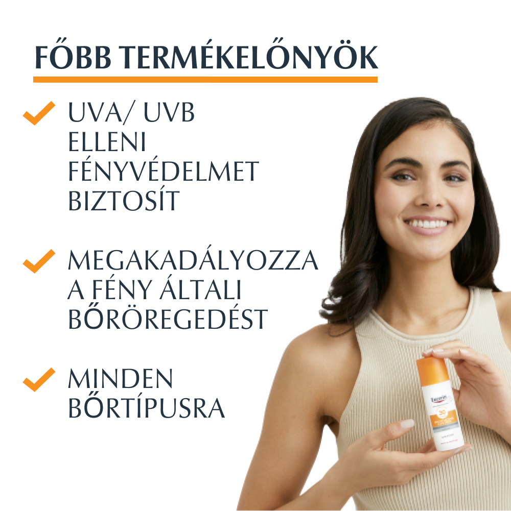 Az Eucerin Sun Photoaging Control napozókrém arcra FF30 illatanyagmentes és kellemes, könnyű textúrájának köszönhetően gyorsan beszívódik. Klinikai és bőrgyógyászati vizsgálatok bizonyítják a termék jó tolerabilitását érzékeny bőrön.