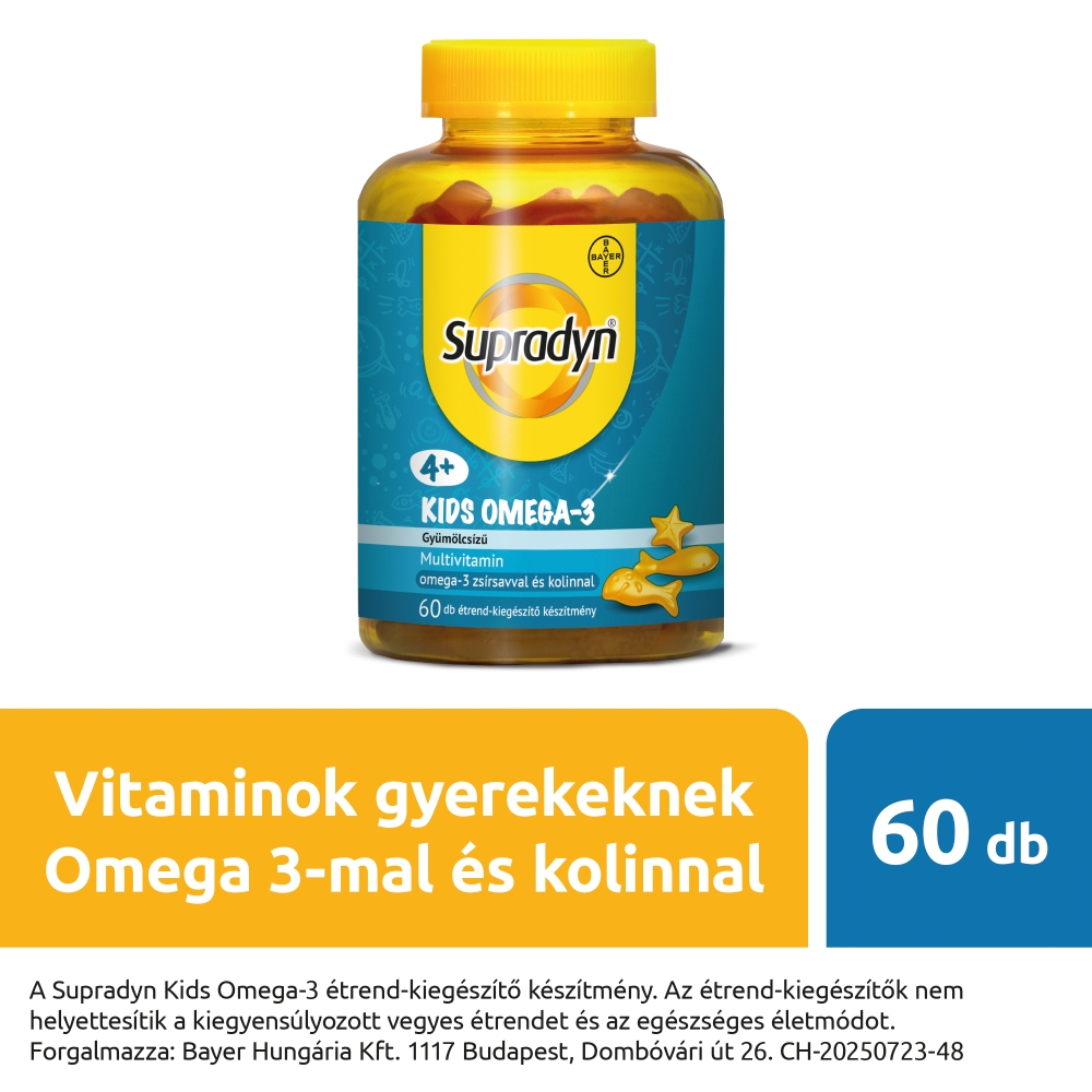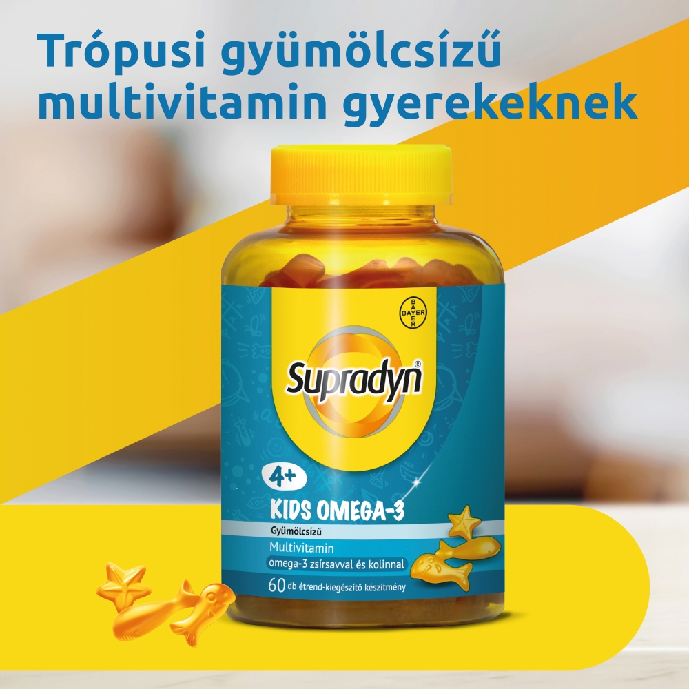 A Supradyn Kids Omega-3 étrend-kiegészítő készítmény. Az étrend-kiegészítők nem helyettesítik a kiegyensúlyozott, vegyes étrendet és az egészséges életmódot.