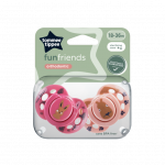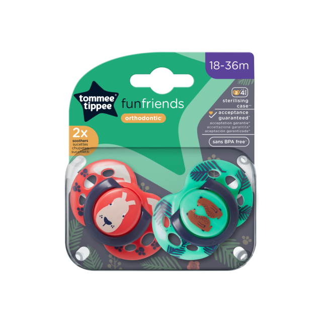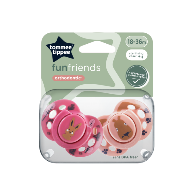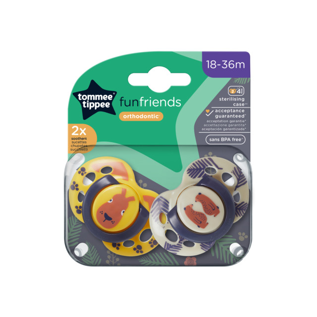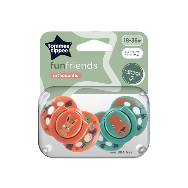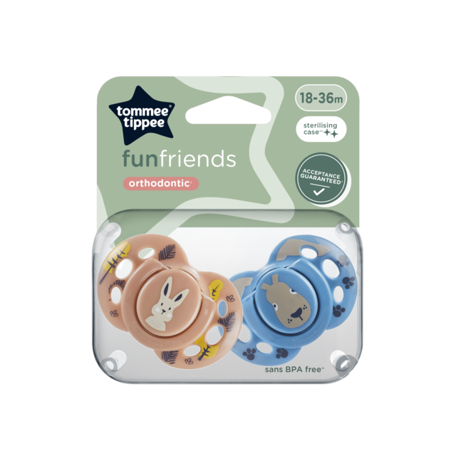 A Tommee Tippee Fun friends játszócumi 18-36 hónapos kortól, a legszigorúbb irányelveknek és biztonsági szabványoknak megfelelve, többféle méretben, folyamatosan megújuló mintákkal és színekkel készülnek.