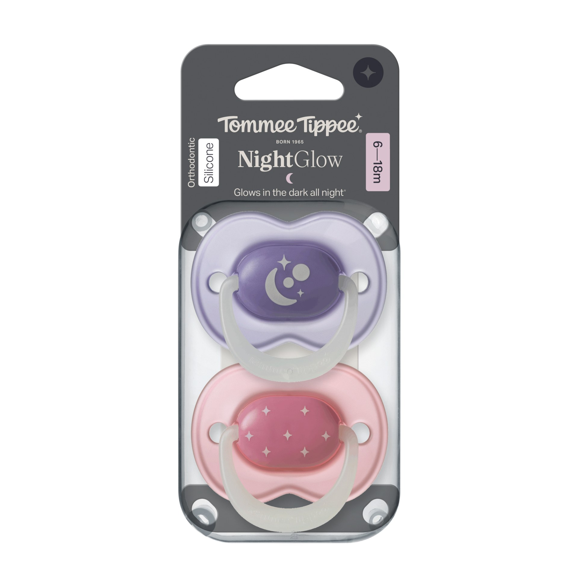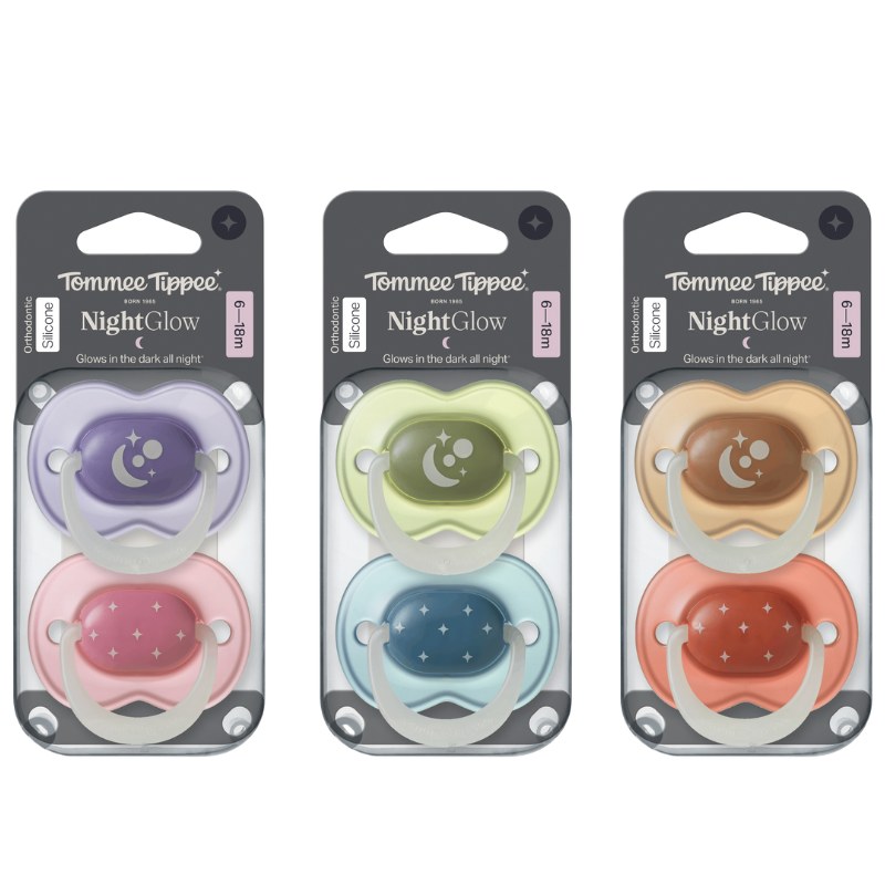 A Tommee Tippee NightGlow éjszakai nyugtató cumi megkönnyíti az éjszakai nyugalmat – a baba és a szülők számára is. Ezek a különleges cumik nappali fényben feltöltődnek, majd sötétben világítanak, így éjszaka könnyen megtalálhatók a kiságyban. A puha, ortodontikus szilikon cumifej és a lekerekített, kényelmes pajzs kíméletes a baba érzékeny bőréhez és ínyéhez, miközben biztosítja a természetes szopómozdulatokat.
