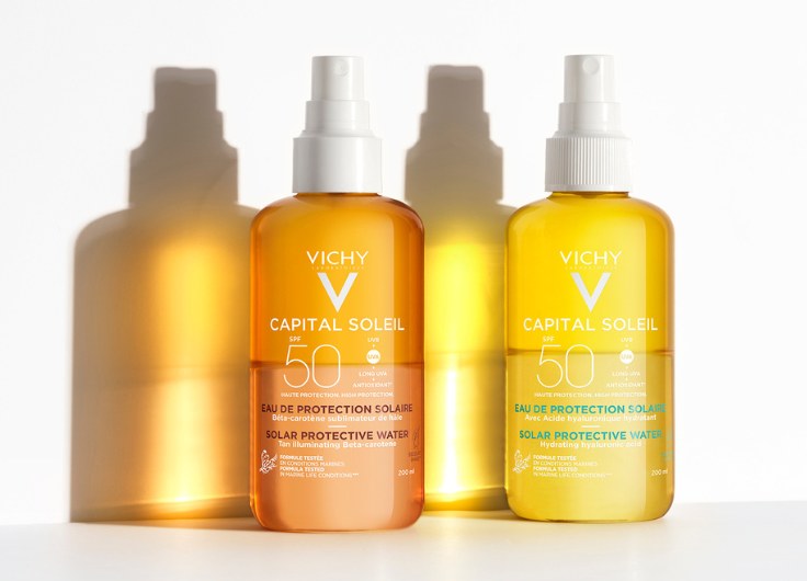 Vichy Capital Soleil SPF50 ultra könnyű spray sejtszintű védelemmel, vízszerű érzettel és magas UV-védelemmel. Áttörő, extra könnyű és extra friss, kétfázisú formulája 4 szinten biztosít védelmet (az UVB-, UVA-, hosszú hullámú UVA-sugárzás és az antioxidánsok ellen).